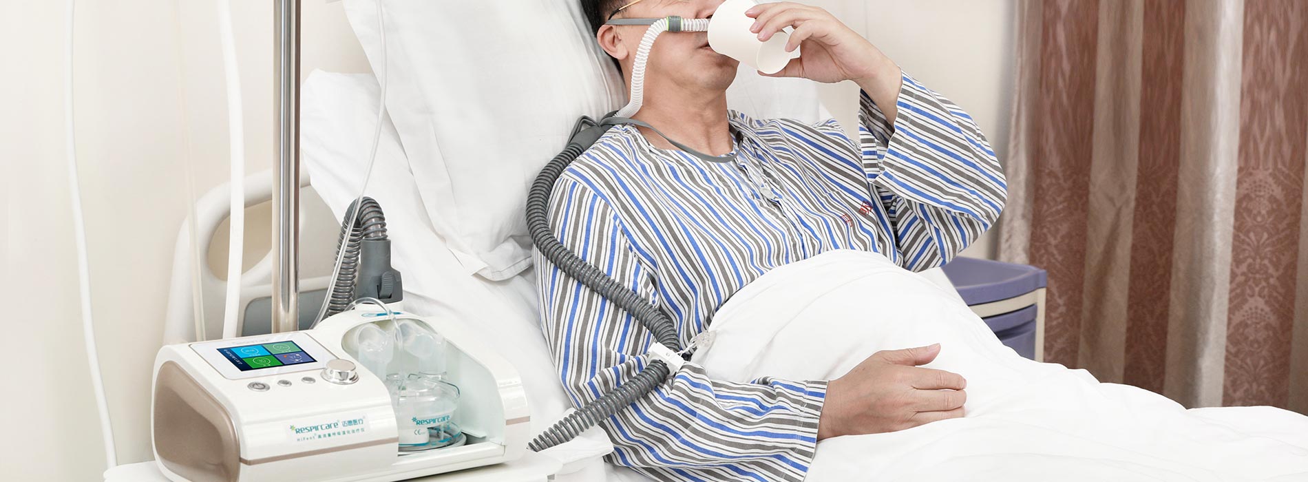 該治療設(shè)備主要包括空氧混合裝置、濕化治療儀、高流量鼻塞導(dǎo)管以及連接呼吸管路。